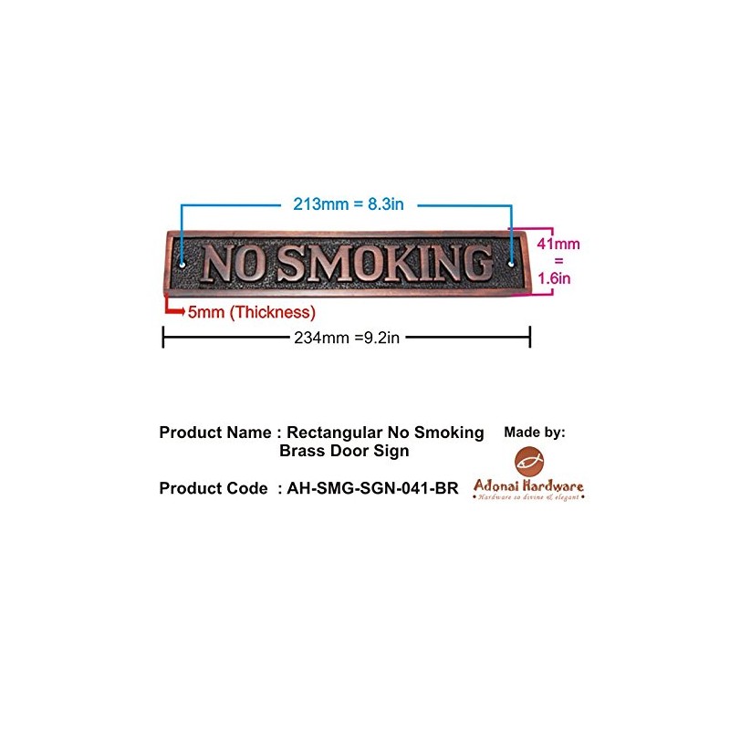 Adonai Hardware Rectangular No Smoking Brass Door Sign - Antique Brushed Nickel