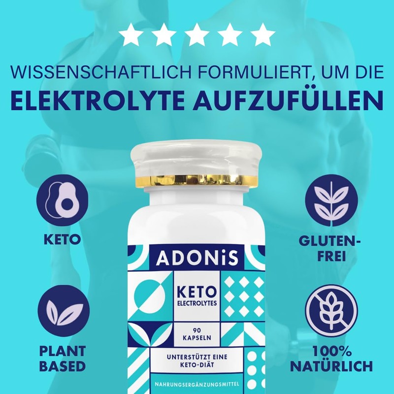 ADONiS Keto Electrolyte Supplement, Sugar-Free and Carbohydrate-free Rehydration, Essential Electrolytes such as Sodium, Potassium, Magnesium and Calcium, Vegan & Keto-Friendly, 90 Capsules