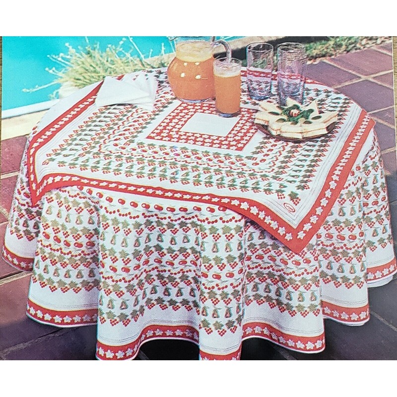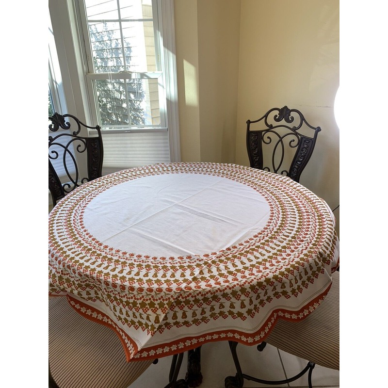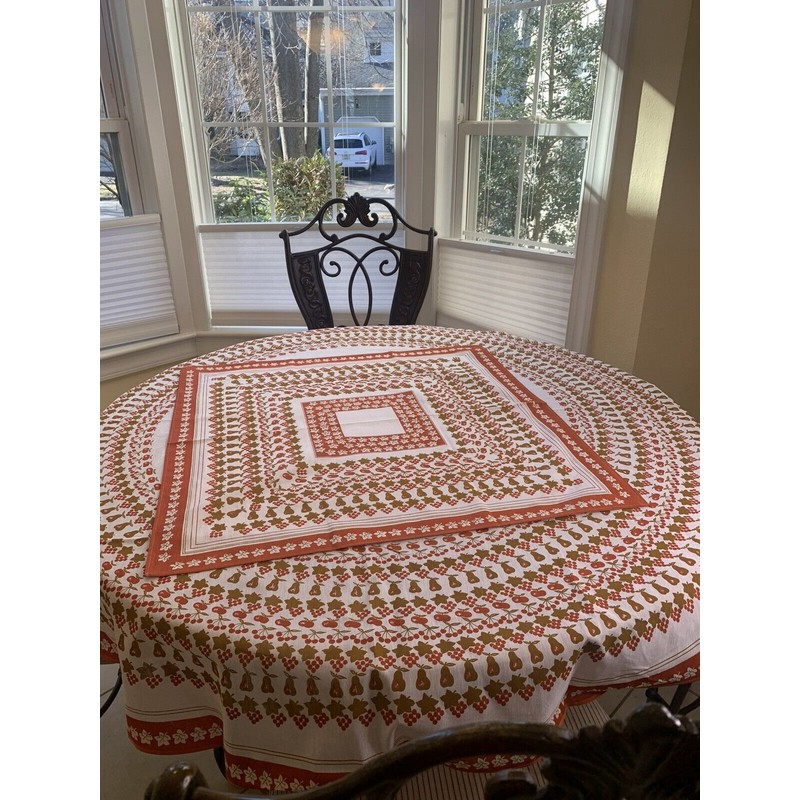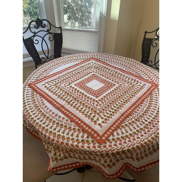 Orange and white Tablecloth Round 61" and 29.5"x29.5" Square overlay 2 pc. set.