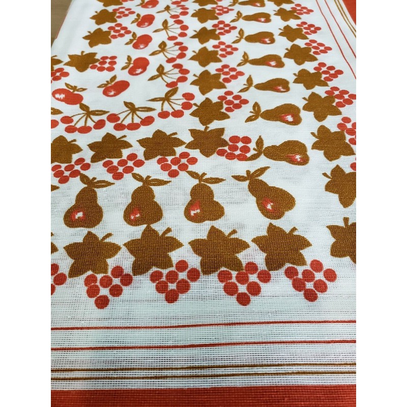 Print of fruit design of pears, apples, cherries and fall leaves