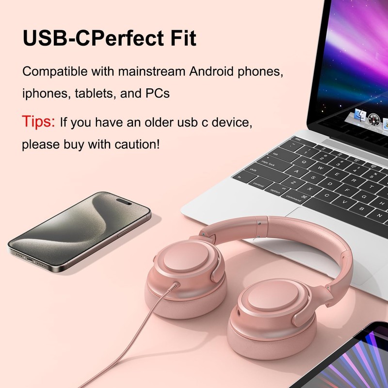 - INSTANT PLUG & PLAY USB-C CONNECTIVITY: Forget frustrating Bluetooth pairing and dead batteries. These wired headphones feature a modern USB-C connector for a stable, lag-free audio experience. Simply plug into your MacBook, iPad Pro, Galaxy, Google Pixel, or any USB-C enabled laptop or tablet for immediate sound. [IMPORTANT NOTE]: These headphones use the modern USB-C Digital Audio standard. While compatible with most new devices, some older or entry-level USB-C ports may not support this feature. Please ensure your device is compatible.