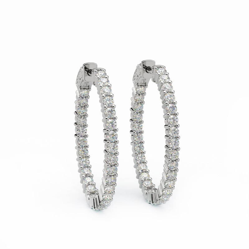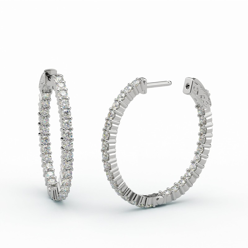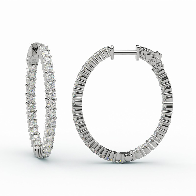- 💎ABOUT THE JEWELRY: These medium Inside-Outside Hoop earrings measure 25 mm in diameter and sparkle everywhere it matters. Featuring 3.0 mm round-cut AAAAA Cubic Zirconia (CZ) stones with a total diamond equivalent weight of 3.52 CTW. Crafted in 925 Sterling Silver with Rhodium Plating for durability and shine. With a hinged post backing and safety clasp, these hoop earrings will stay comfortable and secure all day.
