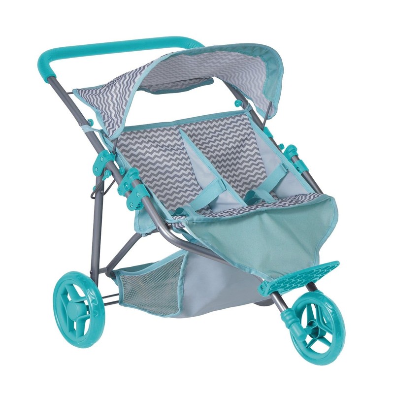 Adora Stylish Zig Zag Jogger Doll Stroller, Convertible Sun Cover, Doll Accessory Storage, Fits Most Plush Toys, Stuffed Animals Up to 16 for Ages 3 and Up - Aqua Green Handle