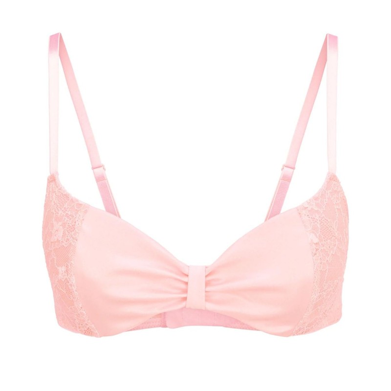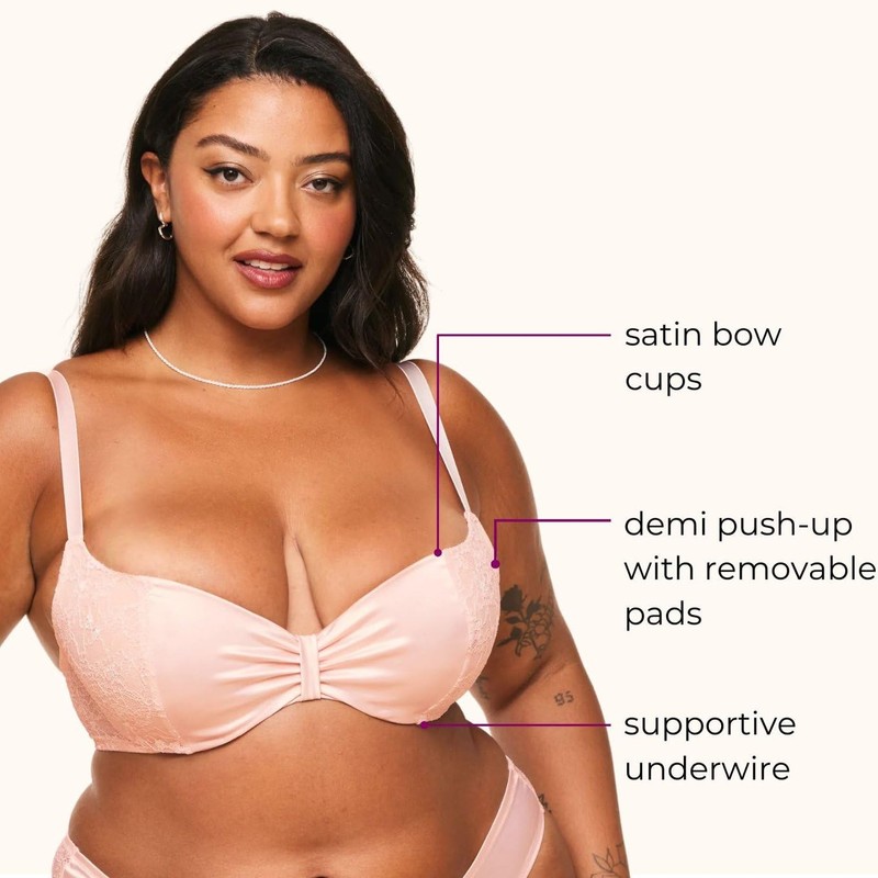 Adore Me Eira Demi Push Up Bra - 30A-46DDD Regular & Plus-Size with Satin Bow Cups, Removable Pads, & Adjustable Straps, Light Pink, 34DD