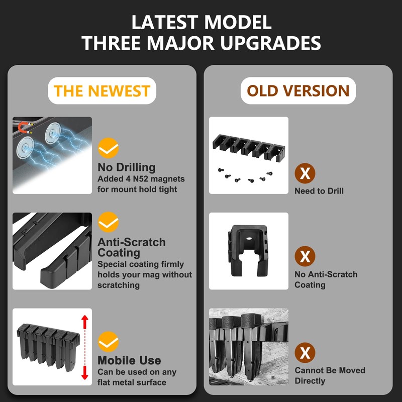 - A COATED NON-SCRATCH SURFACE - Sleek surface with special treatment that will not scratch your magazines or others. Can be reused, adsorbed on steel gun cabinets or any metal surface directly with no issue.