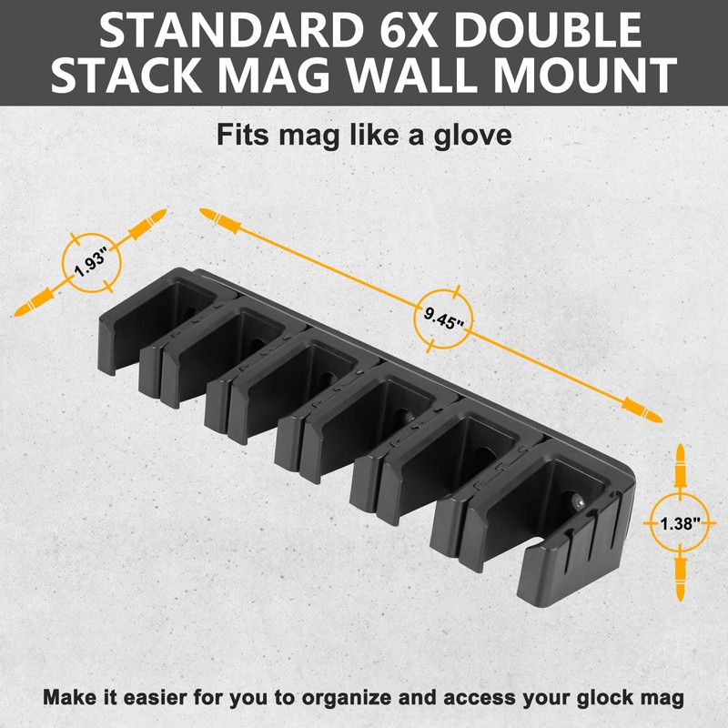 Adoreal 2PCS Magnetic ABS 6 Standard Double Stack Mag Rack Wall Mount, Wall Magazine Display, Detachable Wall Mags Storage Organization System, Precision Fit Glock 17, 19, 26, 31, 32, 33, 34 Mags