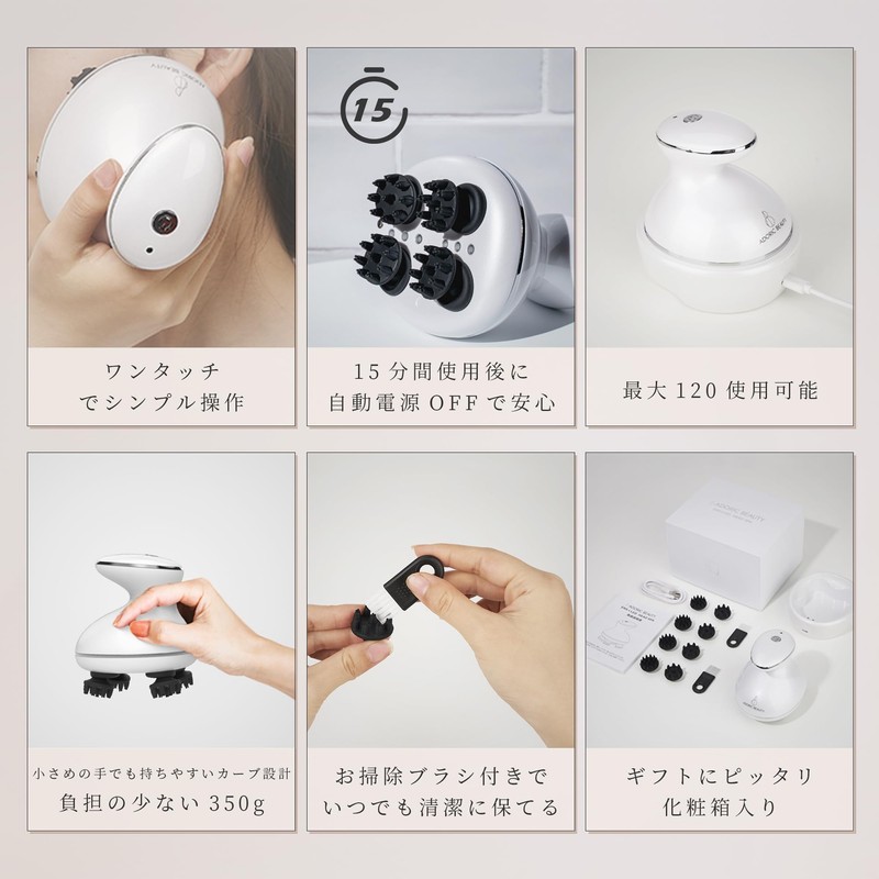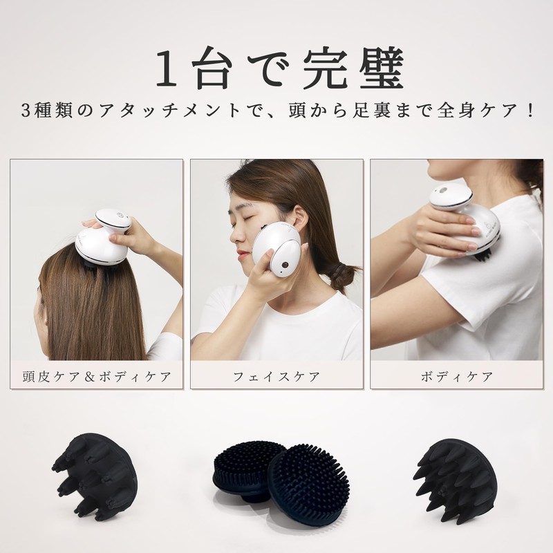 - (1 unit for full body care) In addition to the dedicated scalp attachment, it includes 3 types of attachments that are suitable for full body care such as the shoulders and waist. Each attachment can be used in conjunction with vibration mode and LED SPA function to support full body relaxation and beautiful finish