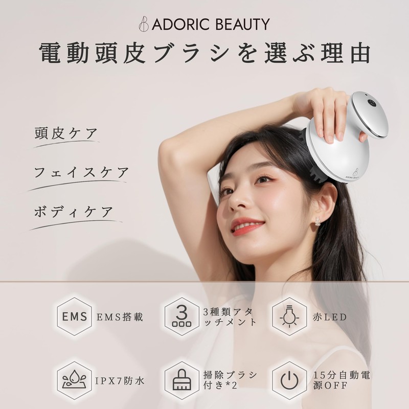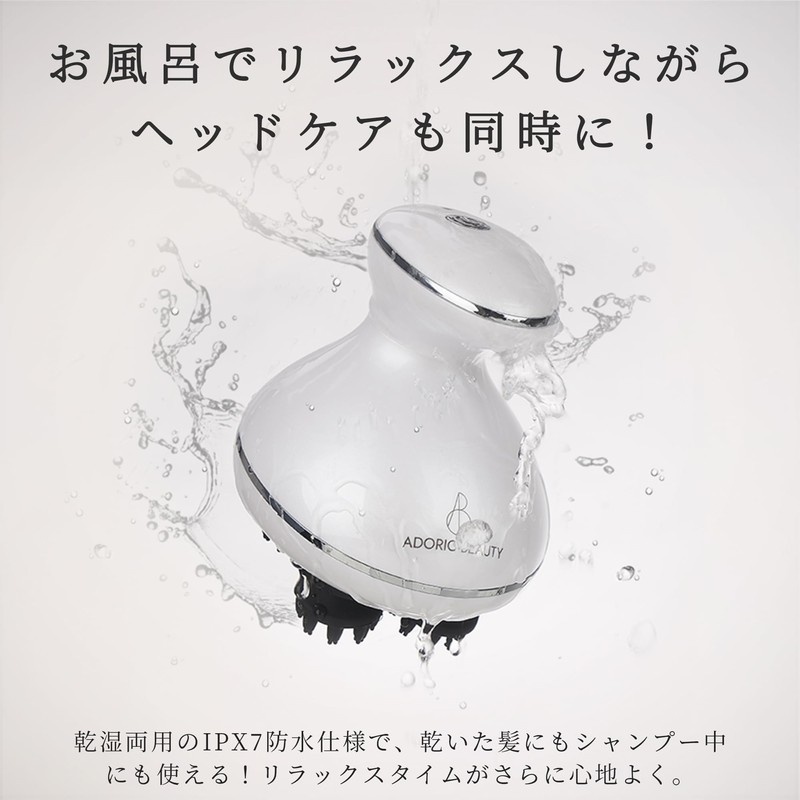 ADORIC Beauty MO006 EMS Head Spa, Electric Scalp Brush, Beauty Appliances, Scalp Care, Face Care, Cordless Noise, For Wet and Dry Use, IPX7 Waterproof, Wide Range Red LED, 3D Vibration, 15 Minutes