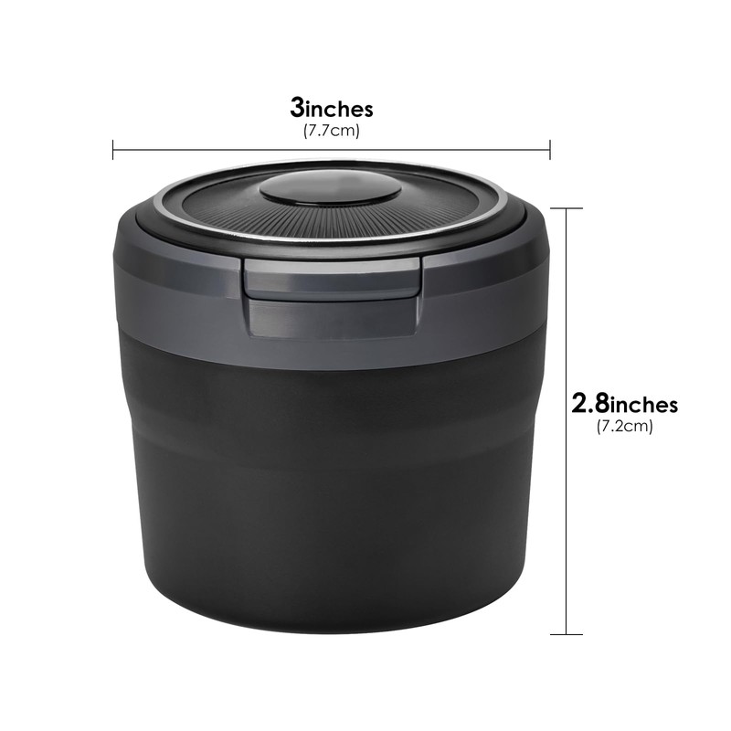 - Smokeless ashtray with lid dimensions:2.9"x 2.9"x 2.7" (7.5cm x 7.5cm x 7cm)