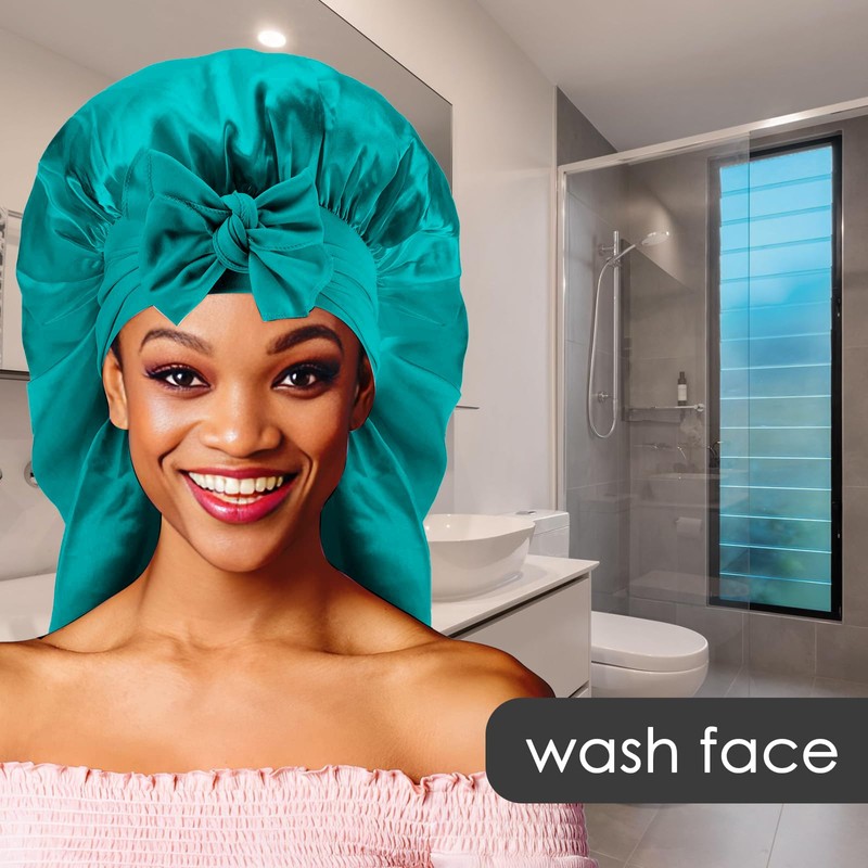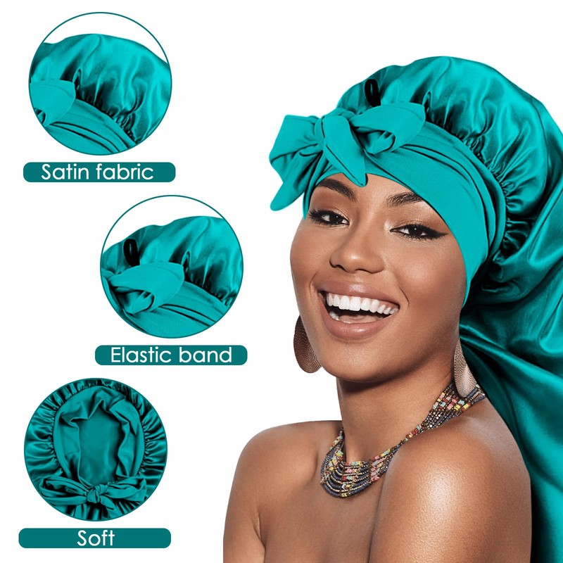Adorila Extra Long Satin Bonnet for Women, Adjustable Braided Bonnet with Tie, Double Layer Elastic Silk Bonnet, Green