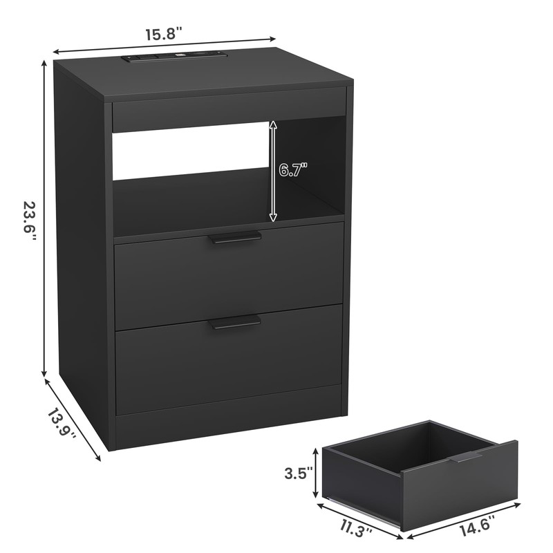 - 2 Drawers Storage & Pull-Out Tray-The bedside table has 2 drawer for sliding storage, The sliding drawer is perfect for private, the open space in the middle is convenient for daily use. The phone or cup could also be placed on a tray. Plenty of storage space Great for living room, bedroom, home office.