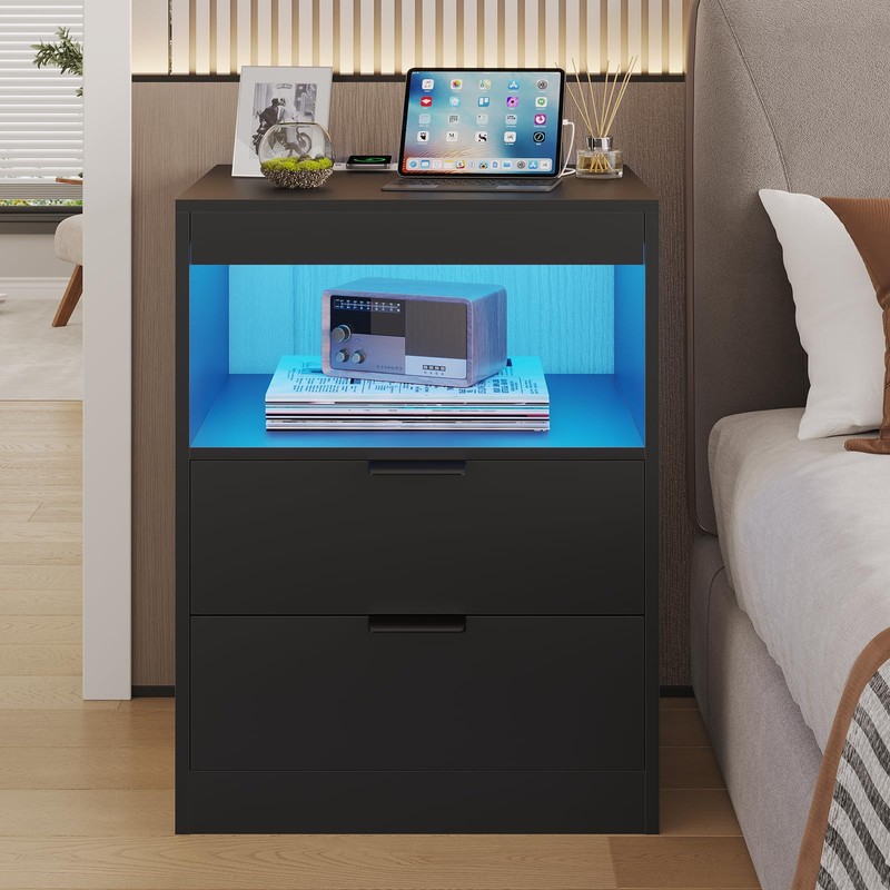 - Nightstand with Multifunctional LED Light Strips-The bedside nightstand comes with beautiful Multi-colour RGB LED Light(There are over 60000 colors to choose from), Phone App + Button Switch multiple control modes. You can freely set the brightness,color,mode and timing function,and design your light show to your heart's content. with LED Lights Nightstand Makes Your Life Smartermore suitable for your needs.