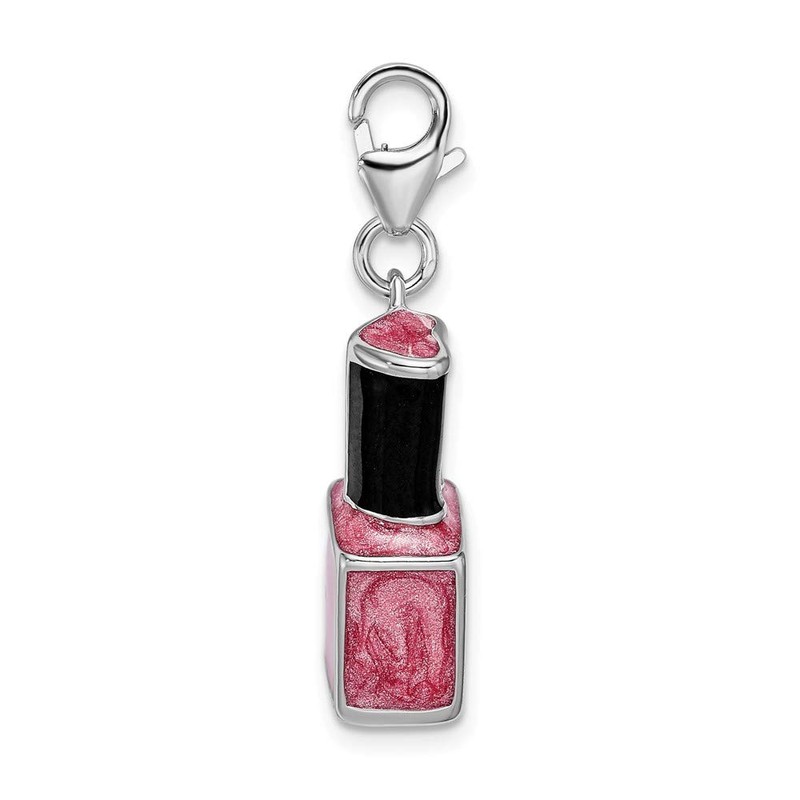 Adornica Diamonds Sterling Silver Rhodium-Plated 3-d Enameled Pink Nail Polish Bottle with Lobster Clasp Charm