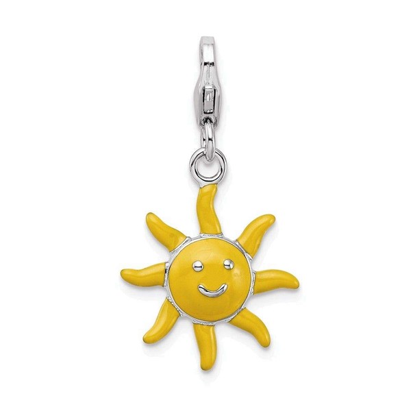 Adornica Diamonds Sterling Silver Rhodium-Plated Enameled 3-d Sunshine with Lobster Clasp Charm