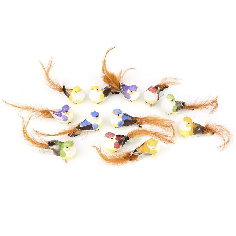 Adornos de pájaros artificiales 12 piezas de simulación encantadora Árbol de aves Encuadernación Decoración de pájaros artificiales Artesanía para manualidades, árboles de Navidad y exhibiciones y cor