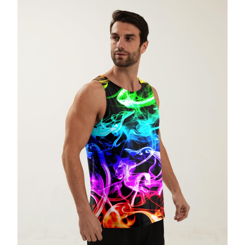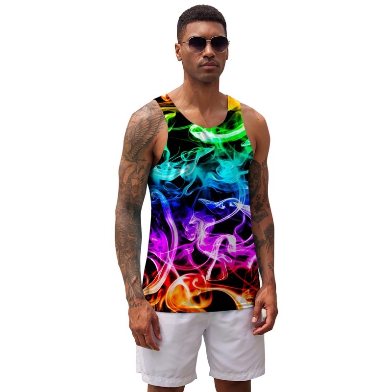 Adovigo Youth Tank Tops Rainbow Graphic Tank Tops Mens Funny Bodybuilding Gym Bodybuilding Holiday Colorful Smoke Outfits Tops M