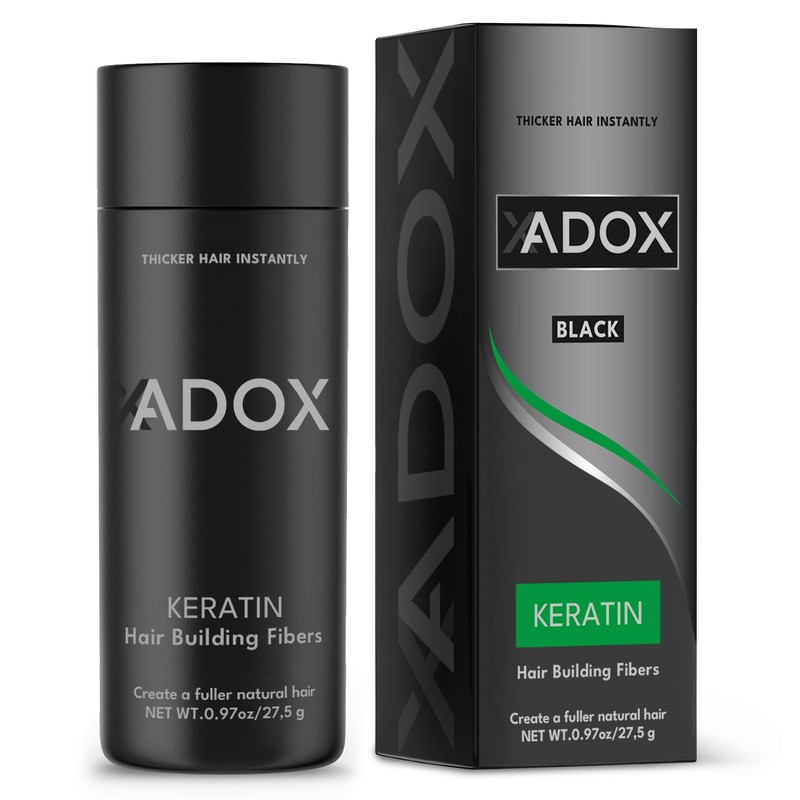 ADOX® Black Hair Fibre Powder | 27.5gr XL Size | Wind, Rain, and Sweat-Resistant Formula for Long-Lasting Wear | Suitable for Both Men and Women | Black