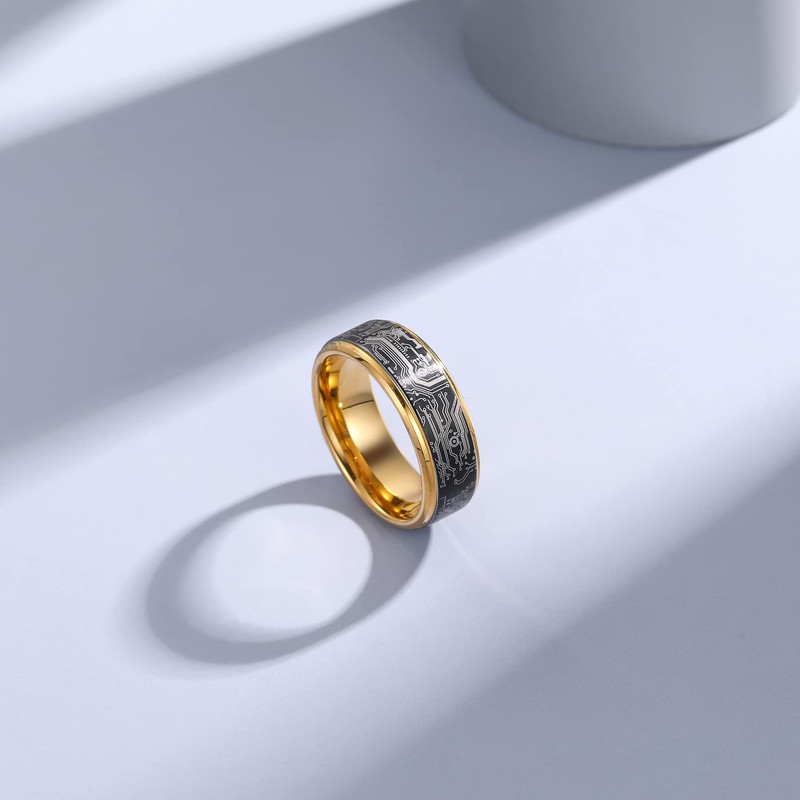• SOPHISTICATED DESIGNS LIKE NO OTHER : One of a kind ring you won’t find anywhere else. Computer circuit board engraving around the entire ring that other rings simply can't compete with.