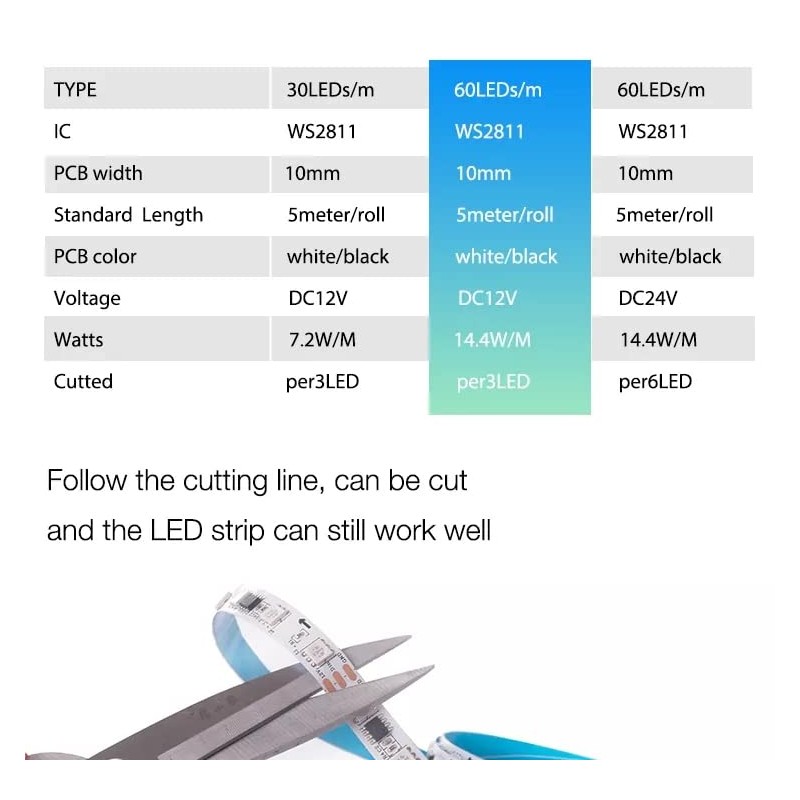 (8) Cutability: 3 Leds / Cutting ( External 2811 ic, 1 ic control 3 LED )