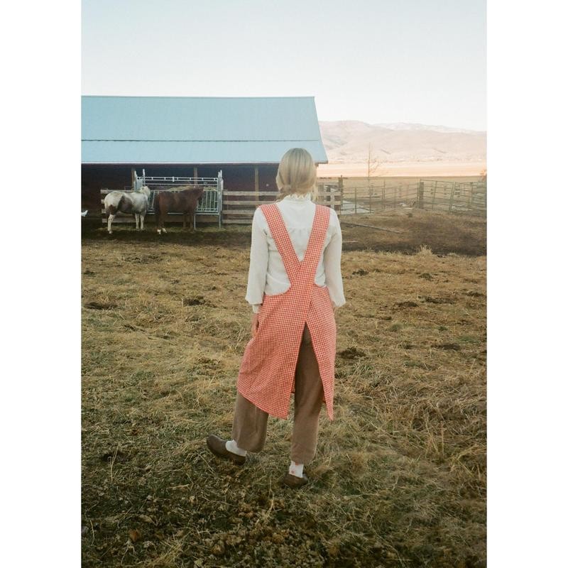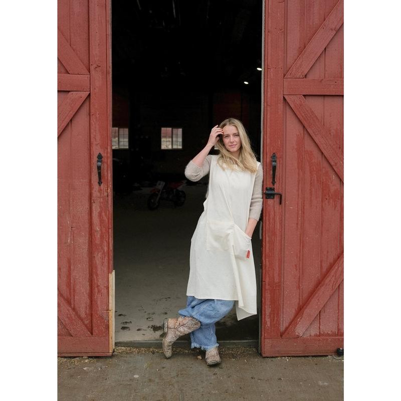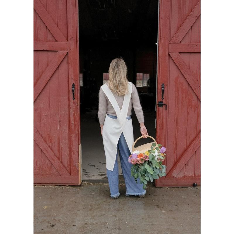 - The Jour Apron is made for everyday. Designed with a simple criss-cross back and two generous pockets, its a perfect companion to harvesting goods in the garden, carrying around your favorite trinkets and of course cooking delicious dishes. Made from a 100% cotton, its lightweight and beautifully tactile.