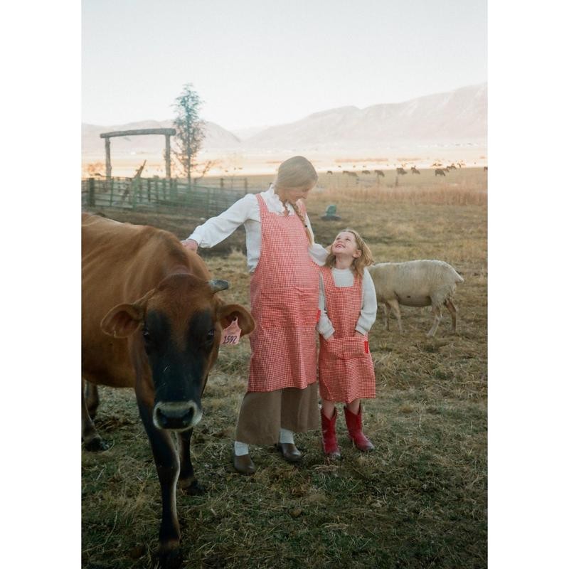 Adult Jour Apron - Lightweight Cotton Apron with Front Pocket, Ideal for Everyday Use:_Radish Gingham Jour Apron