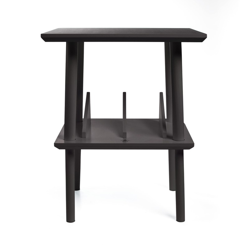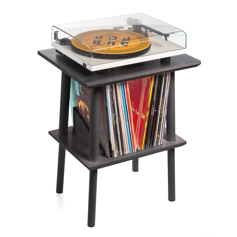 - LIVE OUT LOUD: Store up to 75 records and complement your record player with adultPOP's new vintage turntable stand. This table was developed by music junkies for music junkies, and was born to complement your collection and turntable.