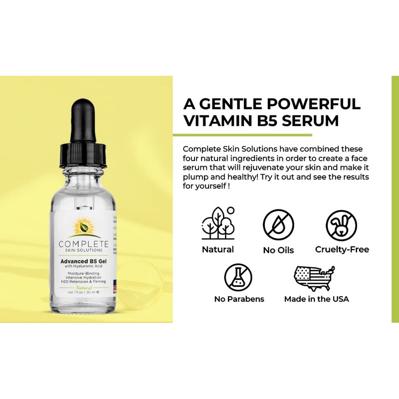 - A Gentle Yet Powerful Vitamin B5 Serum: We have combined four natural ingredients in order to create a face serum that will rejuvenate your skin and become better hydrated, healthy, and plump.