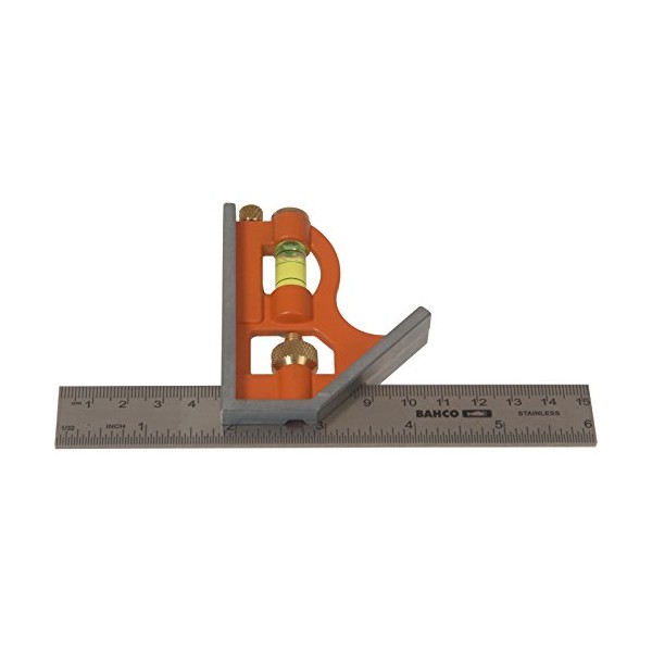 The Bahco sliding Combination Square has both metric and imperial markings on its ruler. It can mark 90° and 45° with an adjustable depth for repetition marking and scribing. The built-in level bubble provides approximate marking and the square has a metal scriber contained in the end.