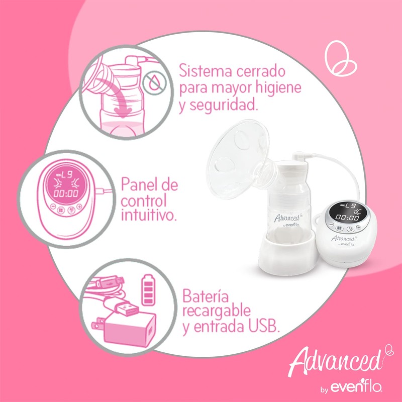 Advanced by Evenflo Extractor De Leche Eléctrico Sencillo, 1 Pieza, Dos Modos de Operación: Estimulación y Succión