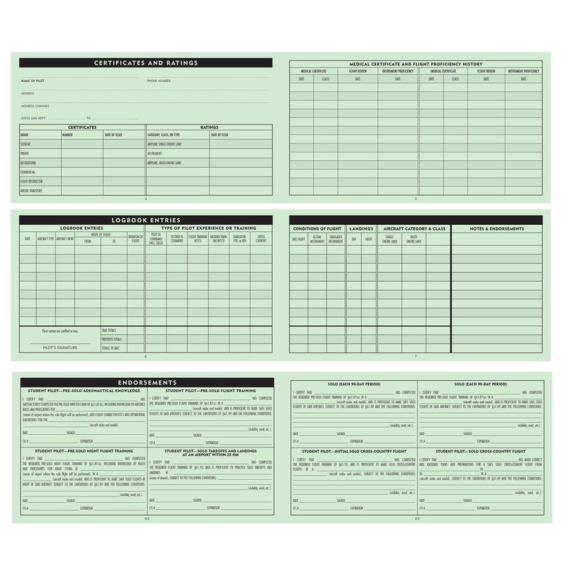 - Includes places to record certificates and ratings, medical certificate and flight proficiency history, endorsements, and more.