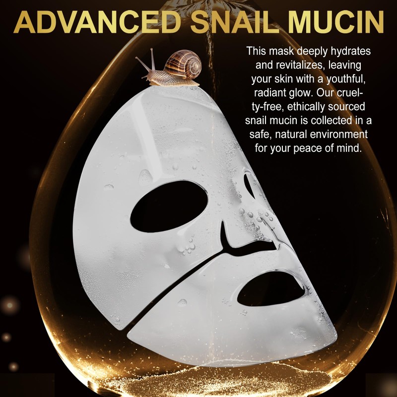 - Advanced Snail Mucin: The mask is infused with snail secretion filtrate (mucin), a super moisturizer and rejuvenating ingredient for your skin, giving it a youthful glow (cruelty-free, our snail secretion filtrate is collected in a natural and safe environment).