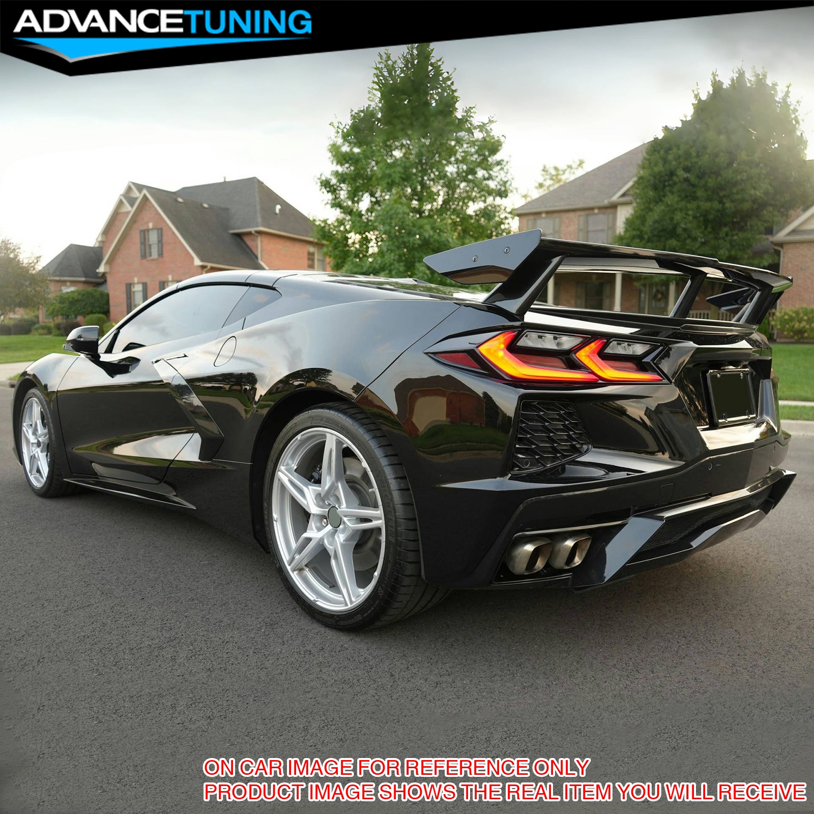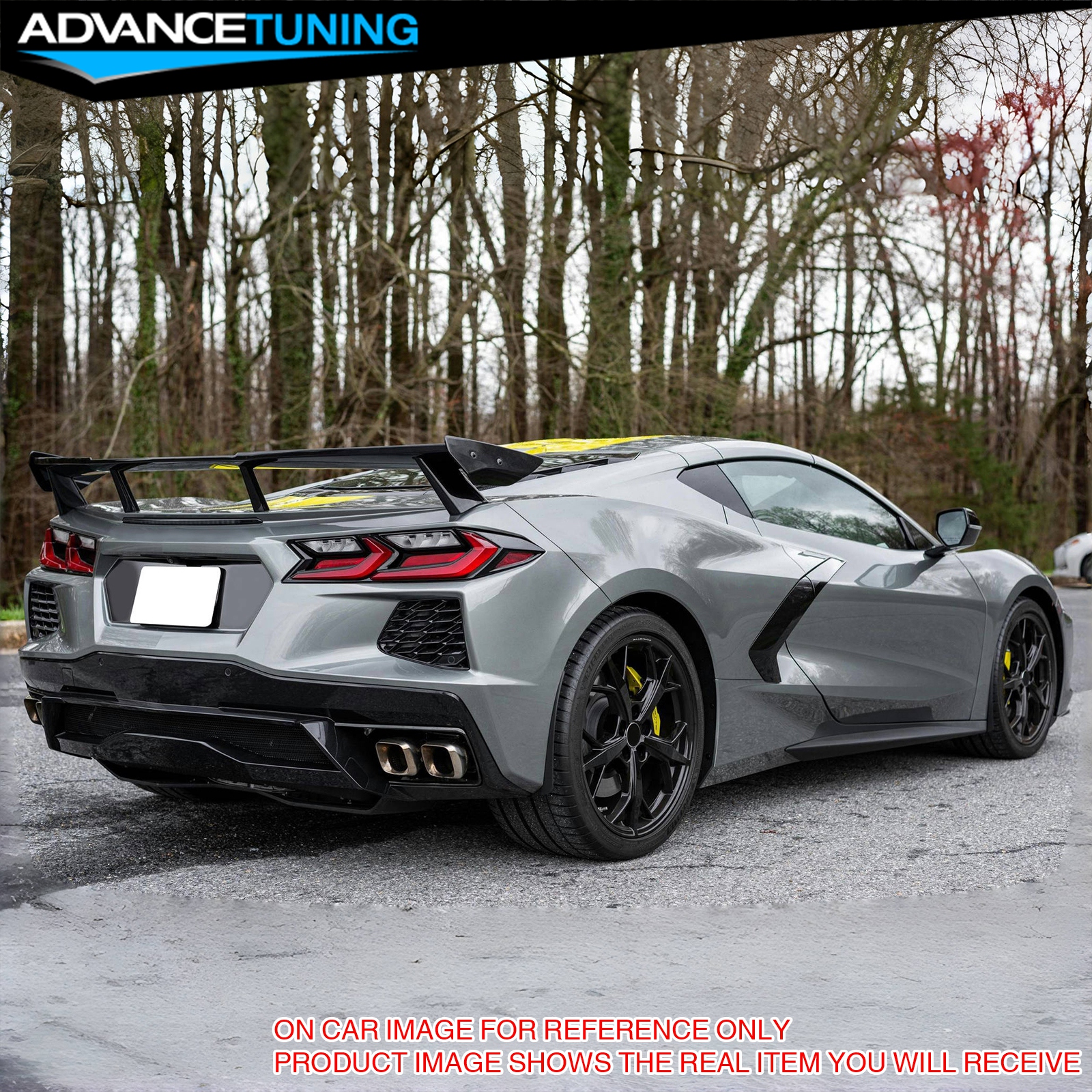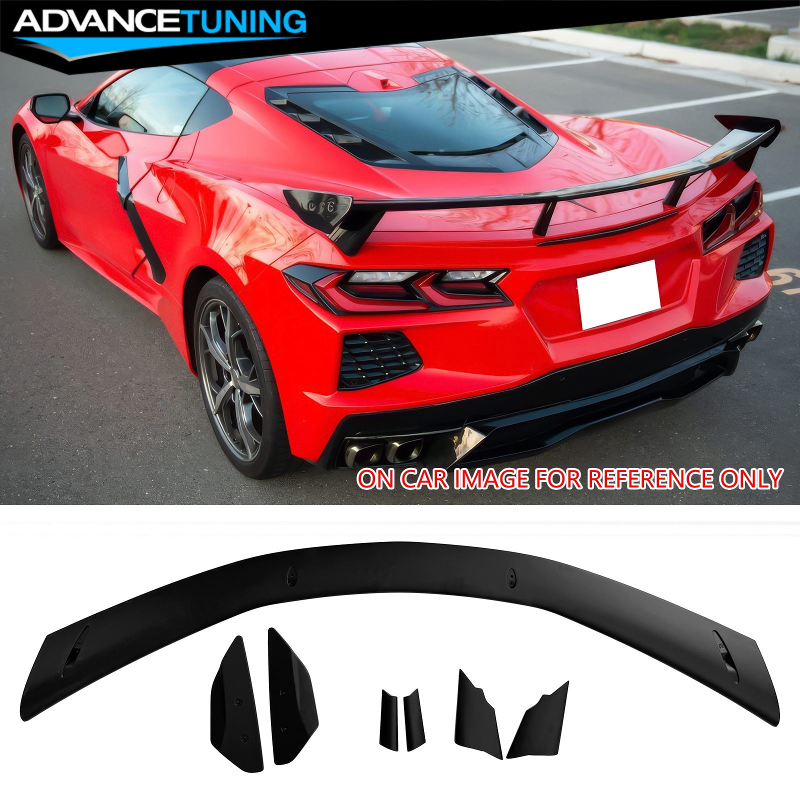 Advancetuning Fits 20-25 Chevy Corvette C8 High Wing Style Trunk Spoiler Lip Matte Black - ABS