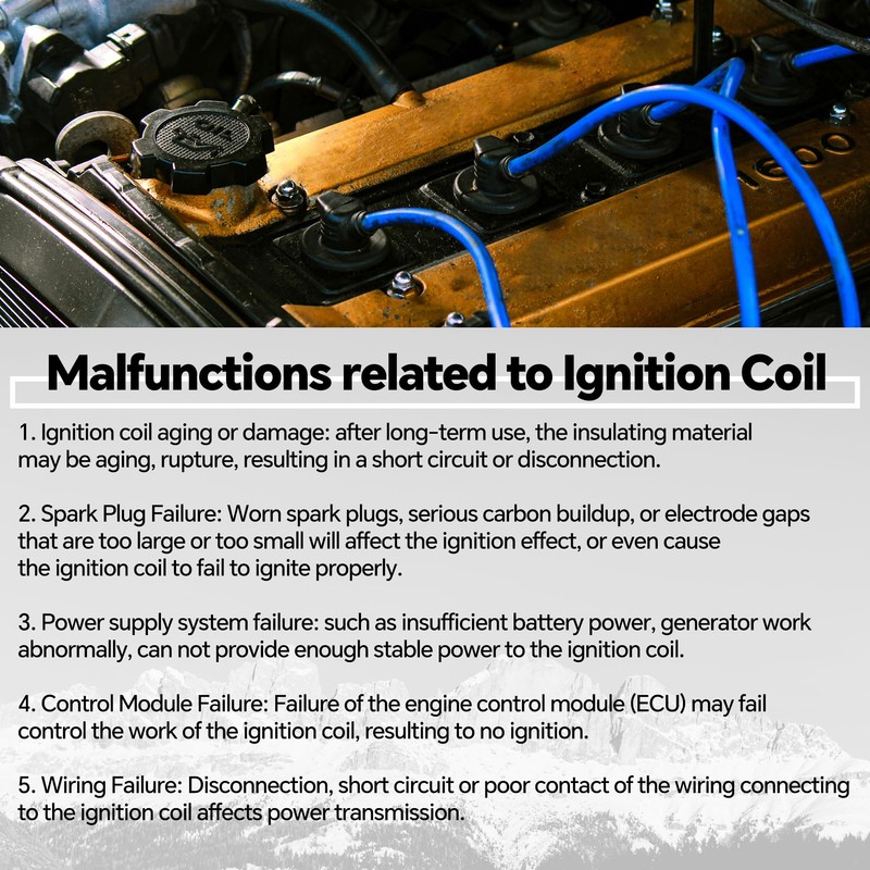 - Fault diagnosis: If the car engine jitters during acceleration, engine cylinder loss, power drop, engine stall and other phenomena, it may be the ignition coil failure. Our ignition coils perform to standards for smoother engine operation