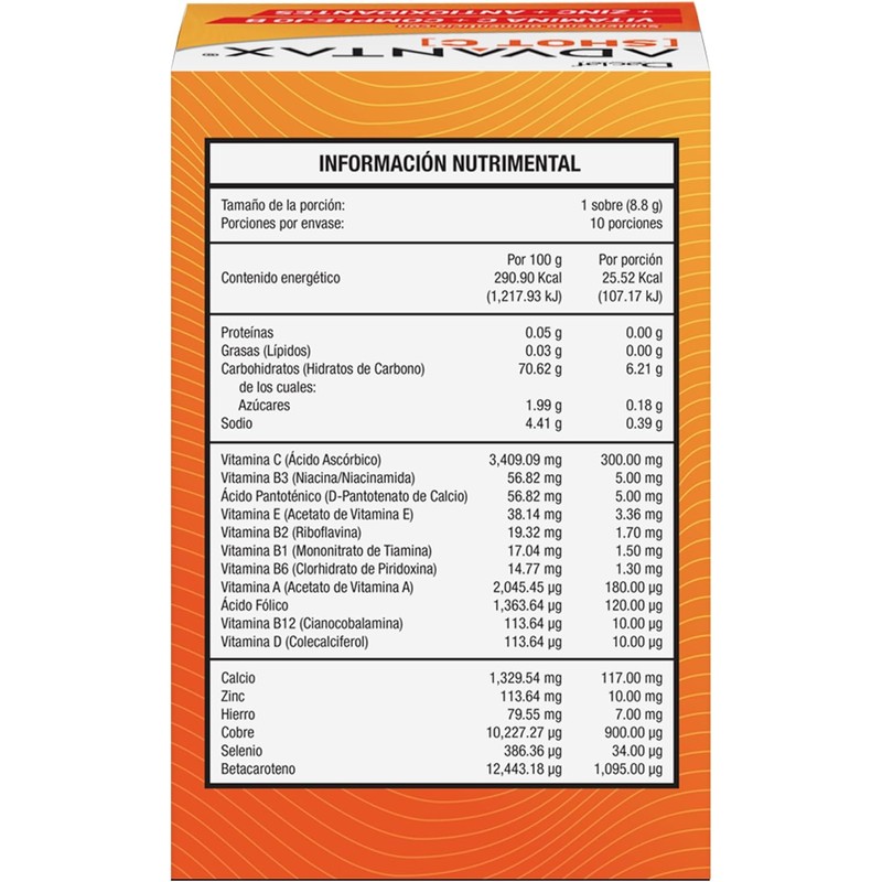 ADVANTAX Shot C, Vitaminas Complejo B + Vitamina C Efervescente, Energía y Antioxidantes