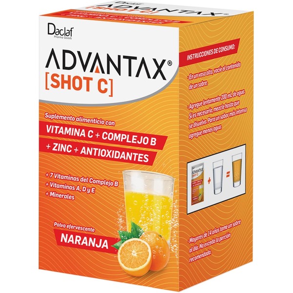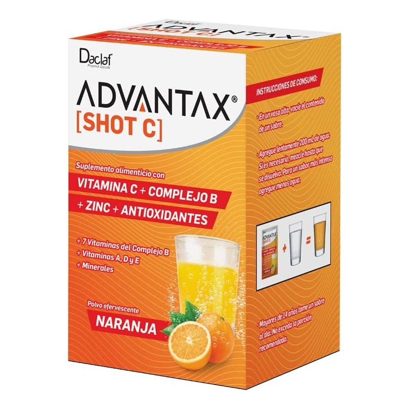 ADVANTAX Shot C, Vitaminas Complejo B + Vitamina C Efervescente, Energía y An...
