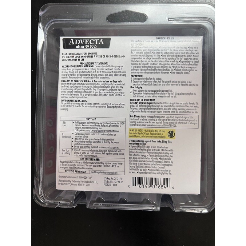 - undamaged item. See the sellers listing for full details", Life Stage: Adult, Country/Region of Manufacture: United States, UPC: 0818145016844, Brand: Advecta, Type: Spot-On Treatment, Dog Size: XL, EPA Registration Number: 2517-178, Dog Weight: Over 55 lbs., Model: Advecta Ultra