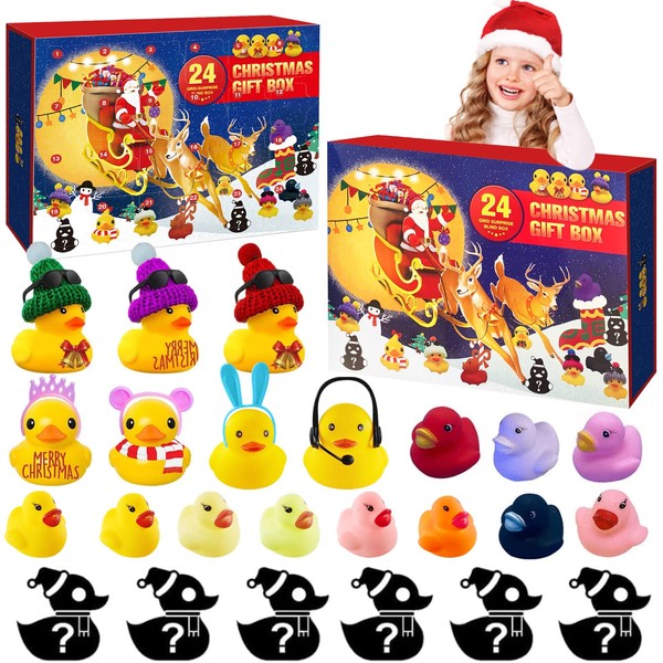 Advent Calendar 2024 Children's Small Yellow Duck, Christmas Calendar Ducks, 24 Grids for Boys Girls 1 2 3 4 5 6 7 8 10 12 Years, Squeaky Ducks Advent Calendar Christmas Gifts