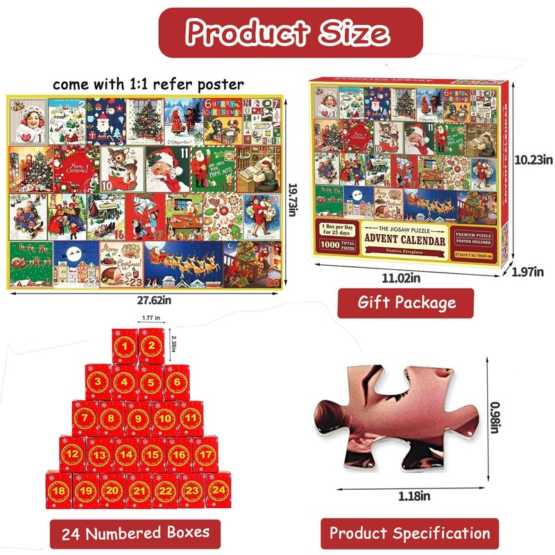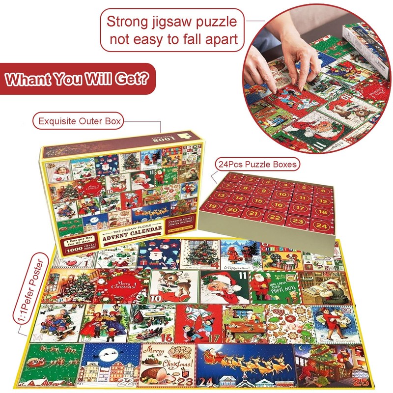 • 【Surpise Christmas Gift Choice】This puzzle advent calendar 2024 can be a perfect gift for kids teens adult on Christmas.It's a perfect puzzle present for Thanksgiving Christmas gift. If you have any issues or missing piece of this advent calendar 2024 adult and kids jigsaw puzzles, please feel free to contact us and we will provide a reliable solution