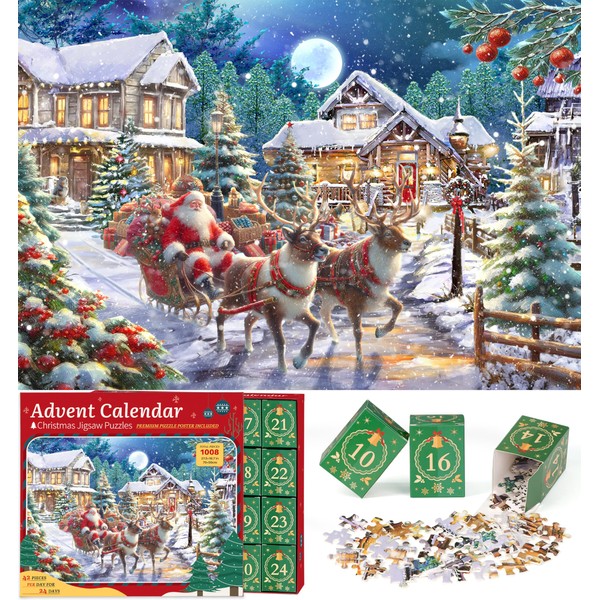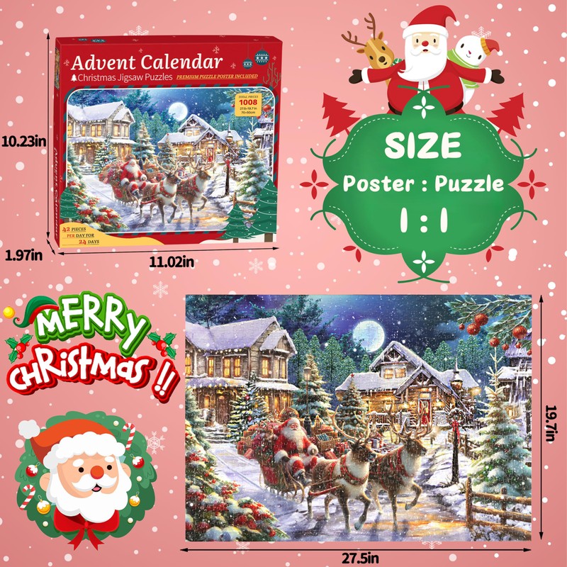 - 【Unique Advent Calendar Puzzle】-- Are you want to do a meaningful thing with your kids to countdown to christmas? Just look our advent calendar 2024 christmas jigsaw puzzle of Santa Delivery Gifts by Riding the Elks . Unlike chocolate or candy advent calendar, this puzzle advent calendar 2024 is more interesting and challenging. Your goal is to finish one section of the puzzle every day between December 1 and December 24. Puzzle finished size: 27.56 x 19.68 inch / 70 x 50 cm.