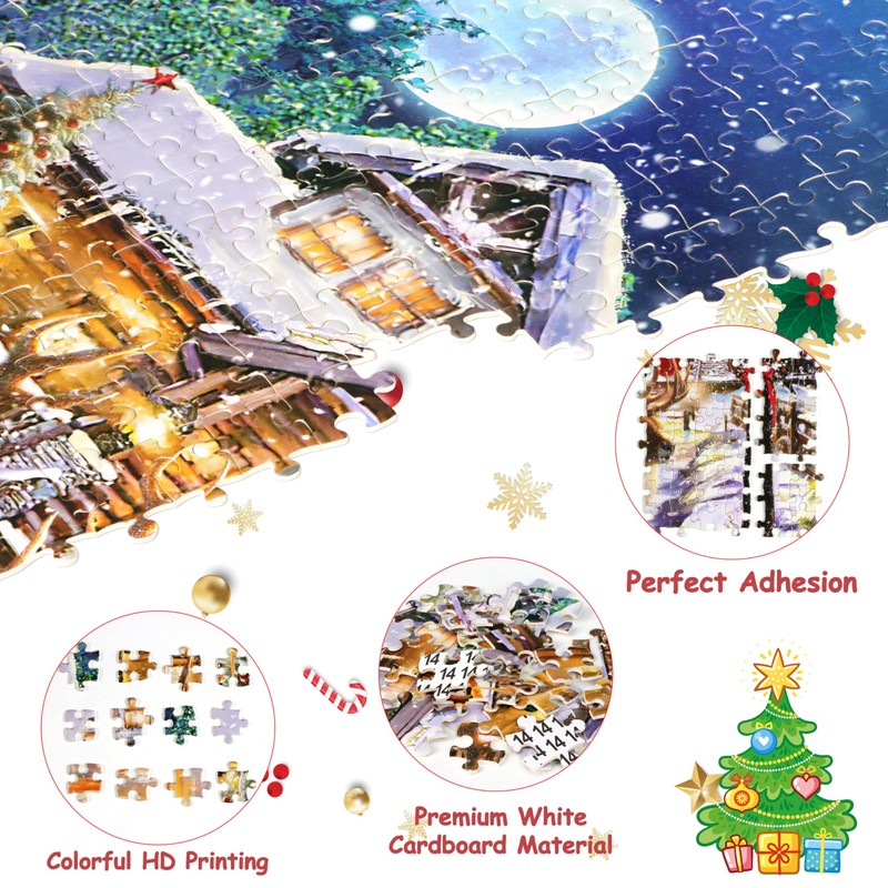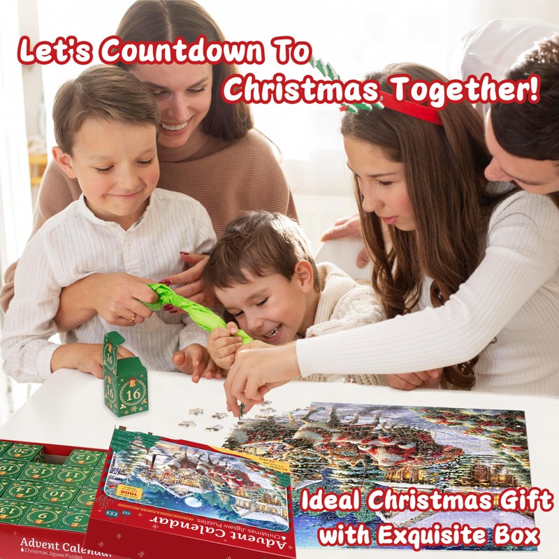 - 【Premium Quality Puzzles & No Worry Missing Piece】-- Our advent puzzle are made of high quality recycled cardboard, sturdy and bend-resistant. Special surface film treatment, color remains freshness after long time storage. Each puzzle piece is precision cutting to ensure a tight fit between pieces, burr-free edge and almost no dust, bring you a satisfying and visually appealing experience. MISSING PIECES SUPPORT: If your jigsaw puzzle advent calendar 2024 has missing part or other problem, just contact us, we will provide replacement or full refund.