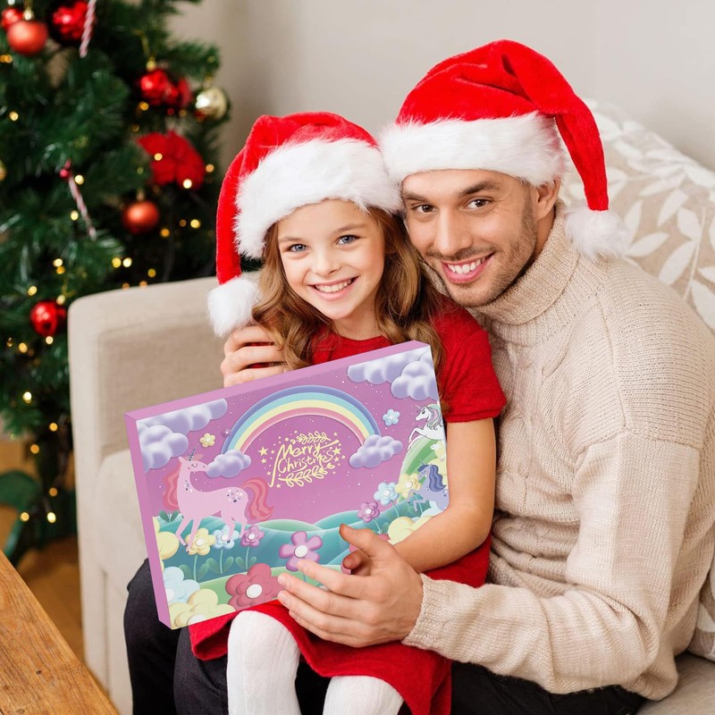- Advent calendar for girls: when she opens the gift box, she first sees the exquisite and loving illustrations, and when she opens the small box, there are different surprises. Includes unicorn, rainbow, cloud, mermaid, elk and butterfly elements and make your girls look pretty and shiny when you use them, and fulfill their girlish hearts.