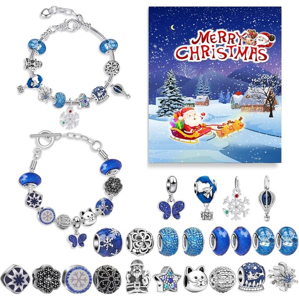 Advent Calendar 2024 for Girls Kids Christmas Countdown Calendar, DIY 24 Days Christmas Jewelry Advent Calendar, 2024 New Charm Bracelet Advent Calendar for Girls (Set E)