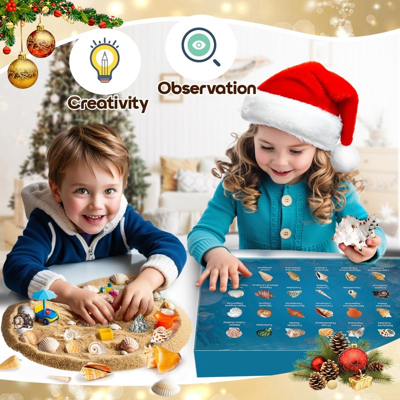 - SEASHELLS FOR YOUNG ADVENTURERS:This kids advent calendar features 24 different seashells, offering a fun way for children to explore different seashells' types and characteristics. It’s great for building shell collections, treasure hunts, and as materials for ocean-themed sensory bins and VBS projects. perfect toys for kids for both creative play and educational purposes, perfect gifts for boys and girls.