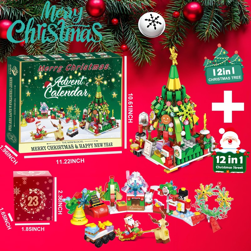 - 🎅🎅🎅Daily Surprise - 2024 Advent Calendar Building Block Set: This is a Christmas Heaven display advent calendar designed for kids and adults counting down to Christmas. The Christmas Advent Calendar Building Block Set consists of 24 numbered boxes, each a different style of Christmas building block. Each day for the 24 days leading up to Advent (December 1 to December 24), you get a surprise from the Christmas Mini Building Block Toys. On Christmas Eve, you'll get a handmade Christmas tree as well as a Christmas reindeer and other small building blocks about Christmas!