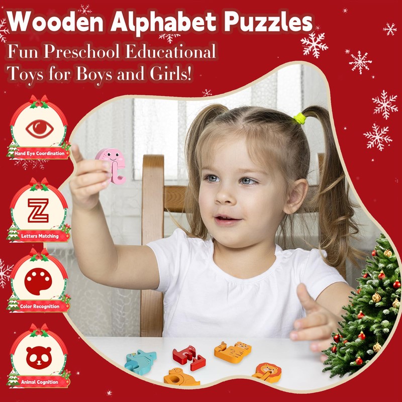 - 【Child-Safe Materials】 Our advent calendar animal letter matching game for toddlers are made of high-quality natural wood with non-toxic paint and are safe for children's health. Children's alphabet learning puzzle toys with smooth edges, rounded corners, and no burrs so that children can play with them safely. The puzzle pieces are large enough to prevent choking hazards for toddlers. Our alphabet puzzle matching game is an important part of early childhood education and is ideal as a first puzzle for babies.