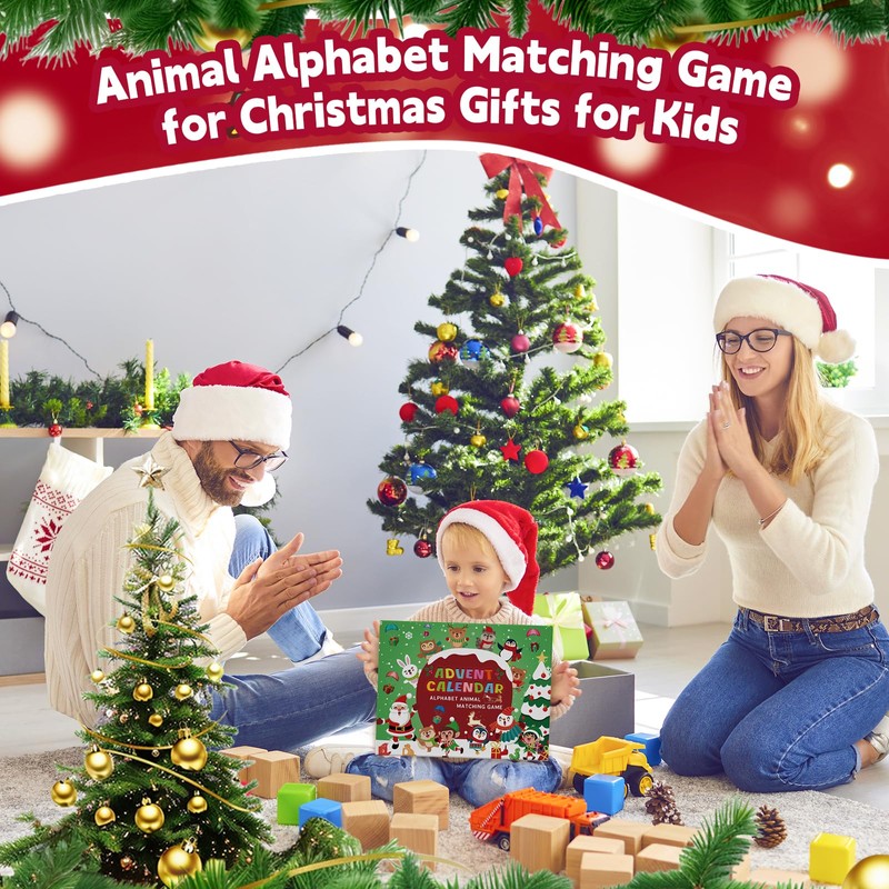 - 【Unique design for the Christmas animal letter matching game】Advent Calendar with Preschool Learning Activities Toys,The animal letter puzzle set contains 26 capital letters and 26 creative animal-shaped building blocks.Each of these letters corresponds to a unique animal building block, allowing children to match the letters to the animals based on shape and color information, e.g., C stands for cat. In addition, the bright colors and cute designs attract children's attention and promote their understanding of letters and animals.