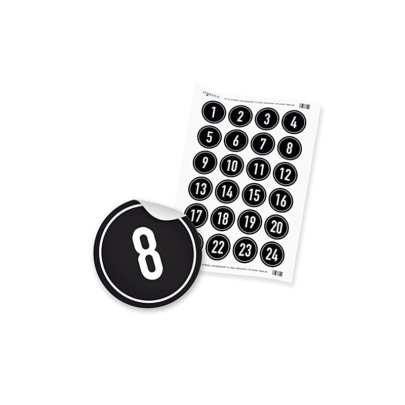 Advent Calendar Numbers 4 cm Number Stickers 1-24 Black White Number High Gloss