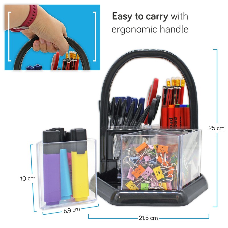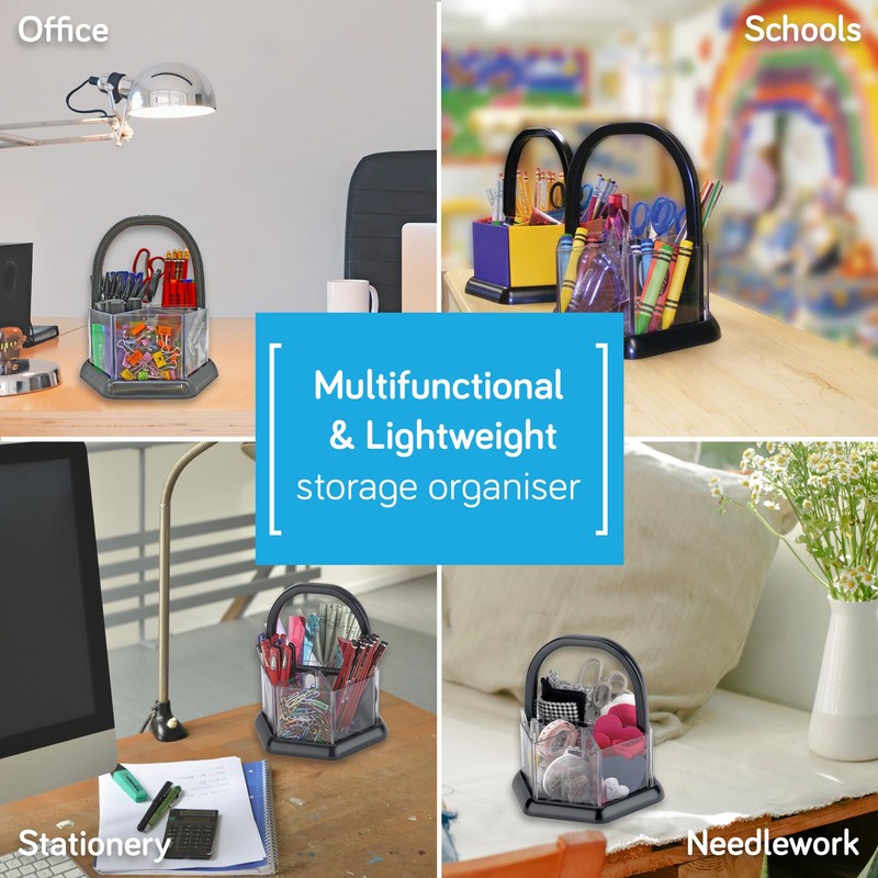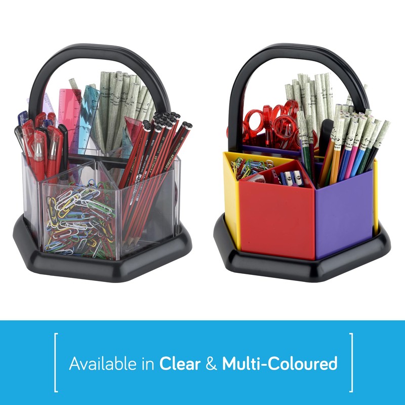 - [Desk Tidy]: An easy to assemble, all in one strong, portable stationery storage solution that features all the space you need to keep your classroom, playroom, office, or home clutter free.