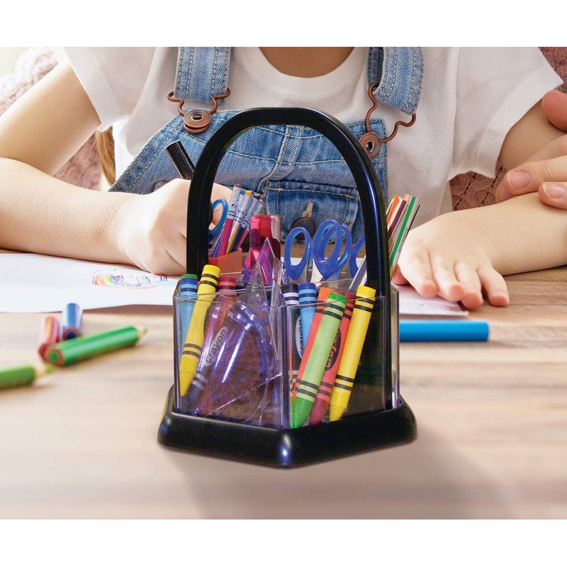 - [Multifunctional Storage]: Versatile stationery storage organiser comes with 6 removable containers ideal for pens, pencils, colouring pencils, paint brushes, scissors, crayons, rulers, art supplies and much more.