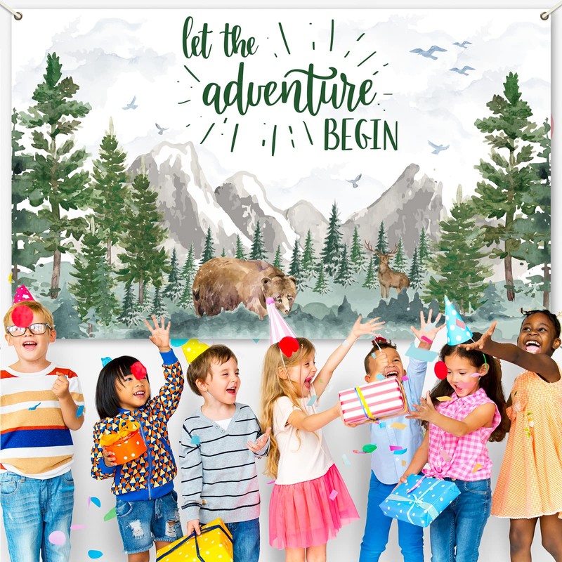 - 【Vibrant Adventure Backdrop Decor】Woodland party banner decor is designed with vibrant eye-catching 'let the adventure begin', allowing you to create a joyful and pleasant party atmosphere. All toddle baby and their parents will like this vivid adventure party photo prop backdrop.